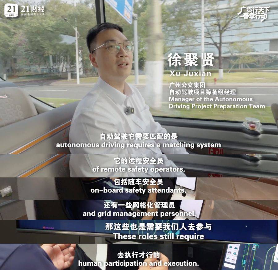 徐聚贤:“自动驾驶它需要匹配的是资料安全员,包括随车安全员,还有一些网格化管制员,这些亦然需要咱们东说念主去参与去实行的。跟着范围增多,咱们会缓缓去安排一些公交车驾驶员去转型培训成为咱们的安全员,通过这种方式使得咱们的员工去转动使命岗亭,去行使AI去更好地做事通盘这个词分解的运营。”