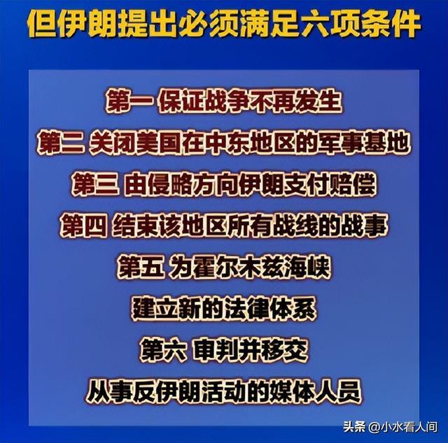 雷扎伊晓喻全球,这场战斗是自1979年伊朗伊斯兰改变成效后,好意思伊之间已捏续了47年的矛盾,当今必须“作念个了断”,伊朗提议息兵6大要求。