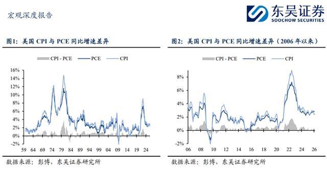 与此同期,另一个揣度好意思国通胀的计算打算也运转发出预警:好意思国PCE(个东谈主破费开销价钱指数)同比依然集结三个月高于同期CPI,死心最新2026年1月PCE同比增速2.83%,较1月CPI同比跳跃0.45个百分点,创2010年6月以来两者差值新高。