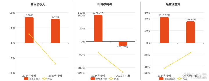 公司贸易总收入为2.49亿元,较前年同呈报期贸易总收入减少1883.45万元,同比拟前年同时下落7.03%。归母净利润为-391.97万元欧洲杯体育,较前年同呈报期归母净利润减少2663.93万元,同比拟前年同时下落117.25%。策划当作现款净流入为3596.86万元,较前年同呈报期策划当作现款净流入减少713.21万元,同比拟前年同时下落16.55%。
