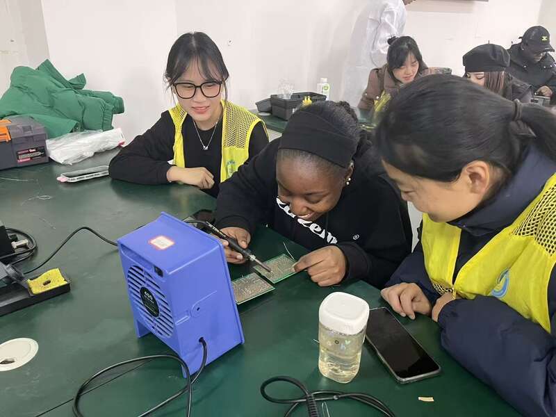 在推行制作阶段,留学生疏组和谐,在中国粹生的匡助下,慢慢完成电路焊合、元件拼装与尺度调试。在此过程中,中外学生围绕技能细节张开疏导,并共享各平缓校的学习糊口体验,互动厌烦融洽。